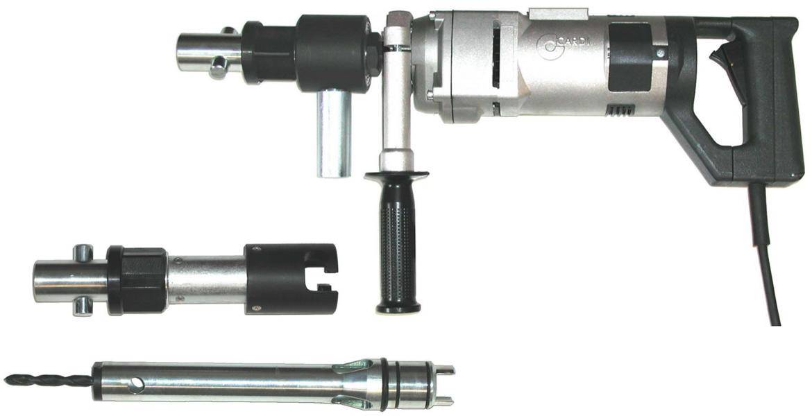 Inovatives COOLER° Trockenbohrsystem mit Bajonettanschluß und leistungsstarkem CARDI Freihand-Trockenbohrmotor