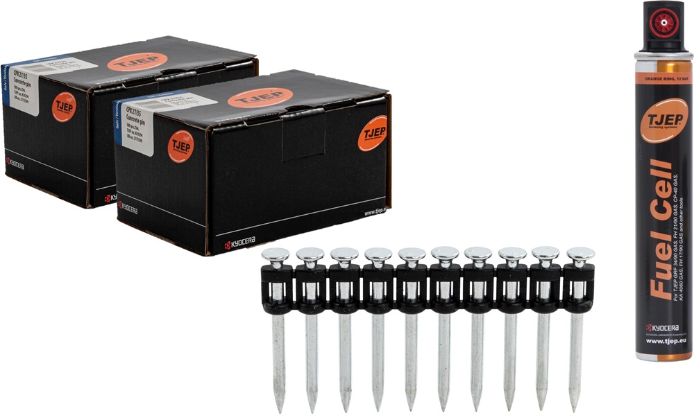 Lieferumfang 2 TJEP Verpackungseinheiten a 500 Stück Betonnägel CPX27/35 und 1 TJEP Gaskartusche oranger Ring