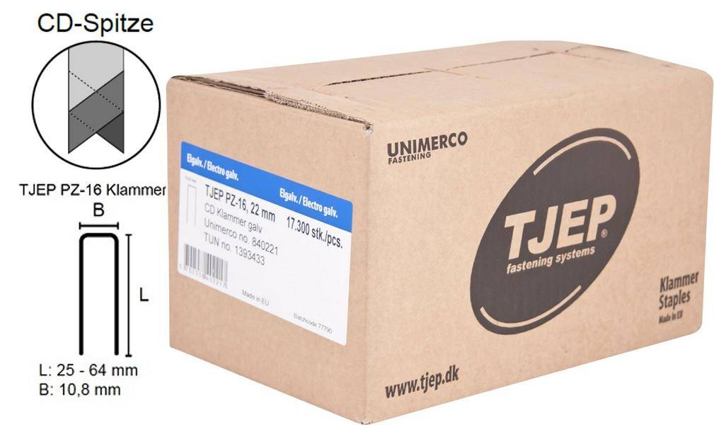 TJEP PZ-16 Klammern 22 mm, verzinkt und geharzt, CD-Spitze